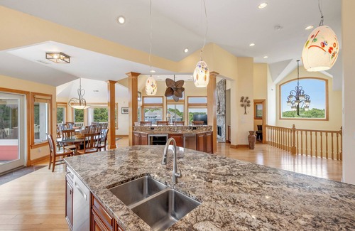 Downstairs, you'll find two more bedrooms and a rec room with an air hockey table, foosball and direct access to the pool area for effortless indoor/outdoor living. The well-equipped kitchenette with refrigerator and icemaker is perfect for convenient pool-side drinks and snacks. Take advantage of the outdoor speakers and put your Beach House Vibes playlist on repeat while you play in the pool or soak in the hot tub. Brush up on your putting skills using your 20ft x 15ft private putting green. When you're ready for the real thing, golfers can book a tee-time or clinic at the community's championship 18-hole course designed by Rees Jones.