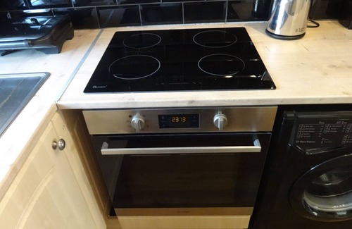 The kitchen has a fridge,/freezer, a hob, an oven, a kettle and a microwave, dishwasher along with all cutlery, plates, ect ect.