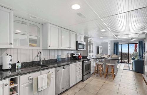 This professionally decorated oceanfront townhome is the perfect setting for your next family getaway! Recently refreshed with new paint, stylish vinyl flooring upstairs, and updated furnishings and decor throughout, every room has been thoughtfully curated for comfort and relaxation. The fully equipped kitchen features stainless steel appliances, granite countertops, and all the essentials for meal prep after long beach days. The first bedroom is on the main level and includes a queen bed with a twin trundle—ideal for flexible sleeping arrangements. Upstairs, the second bedroom offers a queen bed and a twin bunk with an additional trundle. The spacious primary suite boasts a king bed, ensuite full bath, and a dedicated work desk with breathtaking ocean views—perfect for catching up on work or simply enjoying the scenery. Enjoy added comforts including TVs in every bedroom, split-system A/C units, a washer and dryer, high-speed Wi-Fi, and a private outdoor shower for rinsing off after the beach.