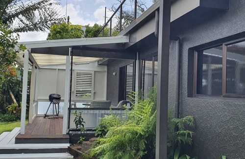 Step onto the covered veranda where you will find the outdoor kitchen and seating area (gas grill and electric induction hob).. The studio is newly renovated and has its own small hot water cylinder.