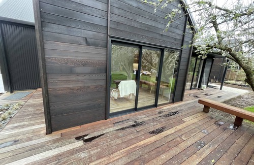 A peaceful, modern sleepout, fully self contained amongst the fruit trees…