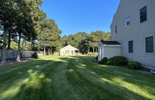 The whole group will be comfortable in this spacious home. 5 bedroom ,3.5 baths with 1 bedroom KING SIZE BED SUITE guesthouse with bathroom! Inground pool, outdoor shower, well landscaped 2 acre property, with basketball court , smokeless fire pit built into spacious pool patio. Interior photos coming soon. Property is centrally located, short drive to lots of restaurants and beaches. Within 5 miles of Old Silver Beach, Falmouth Heights , and uptown Falmouth! Just 2 miles from Mashpee Commons!