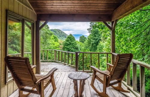 Boasting a prime location only five minutes away from downtown Waynesville and paved, easy access, this dog and family-friendly home is calling your name! Admire beautiful mountain views and beautifully landscaped surroundings from your wrap-around deck furnished with four comfortable rocking chairs, four loungers, and a BBQ grill for family cookouts. Step inside and you will be welcomed by a cozy open floor plan that seamlessly combines the eat-in, fully-equipped kitchen and living room into one comfortable space. The kitchen features all the essential appliances to prepare delicious meals and show your friends how much you appreciate them with a home-cooked meal. The dishwasher will take care of the dishes once mealtime is over and everyone can feel free to relax by the gas fireplace in the living room. Snuggle up in front of the fire and watch a favorite movie on the large flatscreen TV with cable in front of you. You will be surrounded by lush nature, so why not admire it first hand from the furnished deck? Take in the views, breathe in the refreshing mountain air, and you will feel renovated right away. This home also comes equipped with a stackable washer/dryer for your laundry needs, a desk and desk chair in the main bedroom, which is a great addition considering this home offers free high-speed WiFi and Internet, and a firepit.
