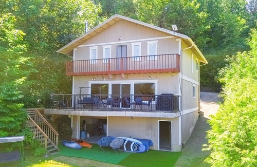 There are two kayaks, two paddleboards, and various floaties available for use at your own risk. There is a manual pump as well as a 12V electric pump available to inflate the paddleboards. Please bring your own life vests/PFD's. If you are bringing your own water crafts, please follow proper boat safety and use the public boat launch across the lake at Snug Harbor. There is no boat launch at the property, nor is the one-lane private road ideal for trailers.