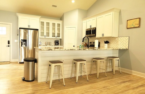 Inside the house is a huge open concept great room with plenty of natural lighting and comfortable seating to use while you watch movies on our new Smart TV! Board games and books are provided as well for some extra "unplugged" entertainment. Paired with the kitchen that is stocked with all the cooking gadgets you'll need are brand-new stainless steel appliances so you can cook dinner exactly to your liking! All the bedrooms offer a Queen size memory foam bed with a Smart TV so you can be sure to catch up on some of your favorite shows after a long day on the water.