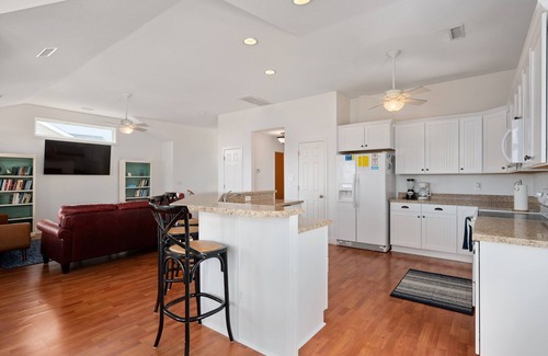 - Open floor plan fully stocked kitchen with dining table and breakfast bar