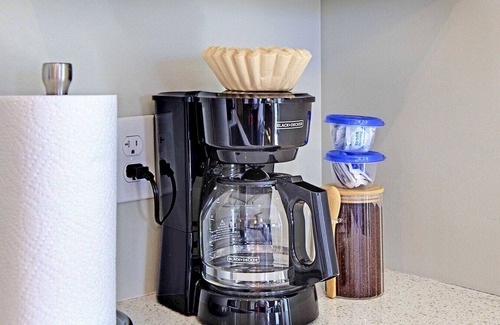 ✔ Coffee pot, filters, coffee, and cream & sugar