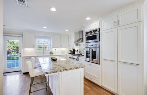 The backyard is a great spot to enjoy your morning coffee or evening glass of wine while taking in the backyards cozy vibe. The garden is blooming with beautiful flowers and the high end appliances make cooking enjoyable and a breeze.