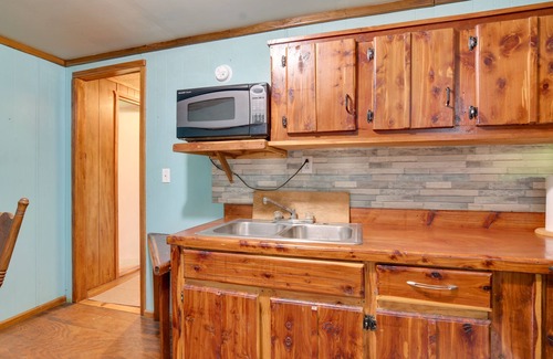Offering plenty of spaces to curl up and get cozy, this 1-bedroom, 1-bath Green Forest vacation rental was made for rest and reflection with loved ones. When you're not admiring the surrounding views off the rooftop deck, get a fire going in the wood-burning fireplace and watch a movie on the Smart TV. For a bit more adventure, take your pick from exploring the depths of Cosmic Cavern, hiking through Dogwood Canyon Nature Park, or spending the day enjoying the various attractions of Branson.