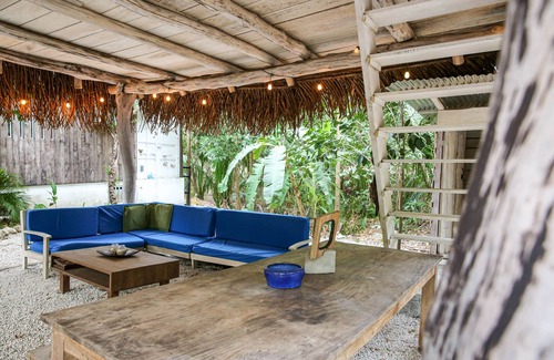 Casa Tiburon is a 40' container home with a green roof and a rancho nestled deep in the jungle of Costa Rica. You can walk to the beach, the yoga studios, and central Playa Guiones within 10 minutes. Upon your return to this cabin style setting, enjoy the lush tropical garden with local organic fruits and veggies grown on the property while listening to the monkeys, animals, and birds tell their stories.