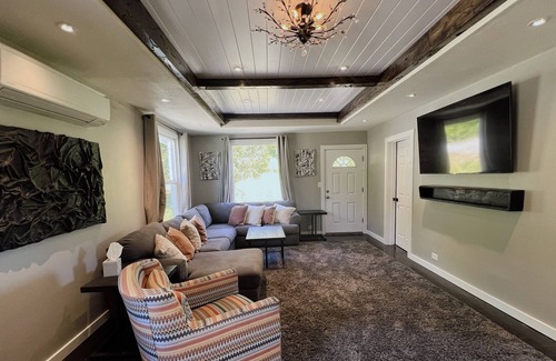 It has three bedrooms with one-of-a-kind custom made furniture that you cannot find anywhere else. You will enjoy hand crafted wooden artisan beds made by local furniture craftsmen and abstract art pieces by local Washington artists. In the first bedroom you find a full size bed with a beautiful live edge headboard, in bedroom 2 you will find a queen bed with a gorgeous furniture and a spacious closet to store your things. The 3rd bedroom has a handcrafted twin bunk bed. These rooms give you a real cabin lodge feel.