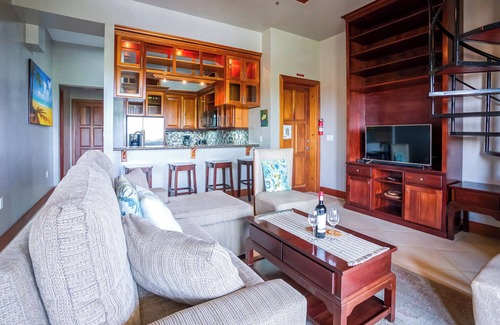 Central American flair meets Caribbean joy at ‘Pelican’ penthouse condo, a third floor condo with partial sea views. Have your very own bird's eye view of the tropical gardens and the sea beyond from this 3 bedroom penthouse!
