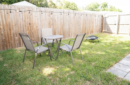 Nestled in Jacksonville, this delightful studio is a welcoming retreat for guests. The cozy space features 1 queen bed, perfect for a soothing night's sleep. With amenities like AC, iron, utensils, dishes, pots and pans, and a hair dryer, guests will feel right at home. The bathroom offers a hair dryer and a removable shower head for added convenience. Fall in love with Jacksonville and enjoy the magic it has to offer. This private studio features cozy interiors, a peaceful outdoor living space, and a fenced backyard perfect for relaxation. Located just minutes from downtown, Mayo Clinic, shopping, restaurants and beaches, it’s ideal for both work and leisure. With utilities included, it’s your perfect home away from home.