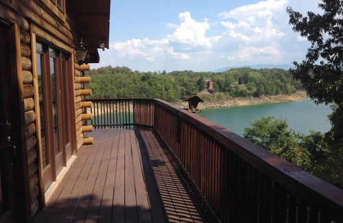 ***Location, Location Location*** Lake Front This 3 bedroom 2 bath cabin on the lake has over 2400 sq ft . This cabin can give everyone with their own place to enjoy solitude, while being cozy and inviting. The upstairs has a large master suite with its own fire place with a spiral staircase leading to it, where you have a private bath with jetted tub and walk in shower. You have a private balcony overlooking the lake that also takes you down to the main level decks well. On the main level of the cabin, there is a second bedroom with a queen bed, a full bath and large open kitchen/ dinning/den combo. The living area has a couch and love seat , also a recliner. Wood burning fireplace and a 54 inch flat screen tv, with dvd players in all Bed rooms The pool table is there as well. The kitchen has all stainless appliances and very well stocked. This area of the cabin is just amazing, all the while with the windows looking out at the magnificent view of the lake and the mountains. You access the main deck from here as well, where you will find a gas grill, lots of nice porch furniture and eating areas. This cabin is perfect for entertaining. The bottom level of the cabin contains the 3rd bedroom with 1Queen bed and 1 set of twin bunks. With a Wii player and X box This area also has its own private deck, as well as a very inviting porch furnishings. And Corn Hole game on the deck and just off the deck you will find a out door fire pit with seating and fire wood storage Down at the lake you have almost 200 foot of private frontage and a private dock and fishing pier are large and spacious with a table and chairs, also there for relaxing right by the water. Bring your own watercraft or rent from Mountain Cove Marina which is less than 5 miles from the cabin. The cabin is less than 15 Minutes from the interstate and the Bass Pro Shop. minutes to Douglas lake horseback riding stables, Sevierville Golf Club, The new Sevierville Convention Center, Tanger Outlet Mall, appx 20 minutes to Pigeon Forge and Gatlinburg, Dollywood, Ripleys Aquarium, and Ober Gatlinburg Ski Resort. appx 25 minutes to the Great Smoky Mountains National Park for hiking, natural trails and white water rafting. Cabin is approximately 1 hour from Bristol Motor Speedway