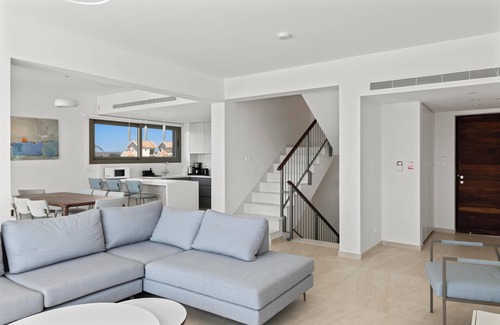 Nestled in the serene and picturesque surroundings of Softades, our villas offer a tranquil escape from the hustle and bustle of everyday life. Here, you can enjoy the perfect blend of luxury, comfort, and privacy. The open-plan ground floor invites relaxation with a modern lounge seamlessly connected to the pool area through sliding doors, flooding the space with natural light and an airy ambiance. A fully-equipped kitchen, complete with modern appliances and a breakfast bar, awaits culinary enthusiasts, while ample dining facilities set the stage for memorable gatherings with loved ones. Guests can have fully access on their villa of all areas and can enjoy with privacy their peaceful premises.