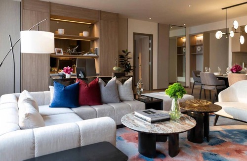 This inviting serviced apartment features a king bed, queen bed, and twin beds, each bedroom with its own en-suite bathroom and international cable TV. The fully-equipped kitchen comes complete with an oven, dishwasher, washer and dryer, while the apartment also boasts separate living and dining areas. With ample space, it comfortably accommodates up to 7 guests, making it an excellent choice for those seeking a luxurious and homely stay in Bangkok.