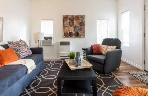 Chill in this luxe two bedroom · Tastefully furnished duplex located in the heart of Downtown Redlands. Quiet yet convenient location. Perfect for the Wandering Traveler · Working Professional · Food Enthusiasts · Music Junkie and Art Scavengers.