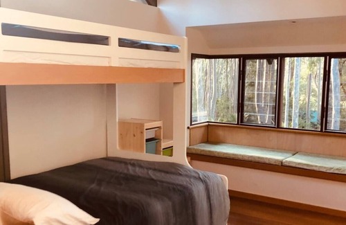 Bedroom 4 - Bunk bed with double on bottom and single on top. Window seat and inbuilt wardrobe.