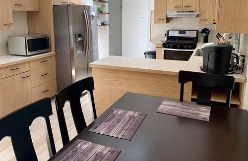 You'll find everything you need in the kitchen to cook a great meal - from pots and pans to measuring cups. There is a brand new gas oven and stove with five burners, a large microwave, refrigerator, dishwasher, three types of coffee machines, and much more.