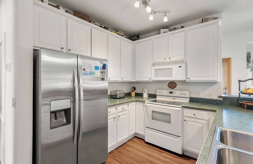 Shallowbag Bay 704 is a newly remodeled condo situated in the exclusive waterfront community of Shallowbag Bay Club. The end-unit layout offers more privacy and natural light along with panoramic views of the picturesque surroundings. When you arrive, skip the stairs and use the building elevator to send up your luggage and groceries. You'll enter into a comfortably furnished, open-concept great room that includes a wet bar with wine fridge and access to a covered deck overlooking the marina. Hardwood floors and tile flow throughout this entire dog-friendly condo, even in the bedrooms - you won't find any carpet here! Get dinner started in the fully stocked kitchen with plenty of prep space and a peninsula with bar seating. The dining area leads out to a screened porch that connects to a deck accessed by the two secondary bedrooms. The primary suite provides access to the marina-facing deck and includes an updated private bath with spacious walk-in shower.