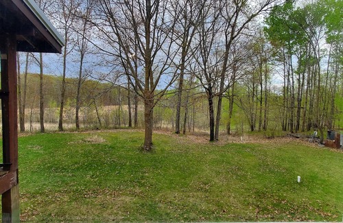 This log cabin near many favorite lakes is a cozy retreat for guests looking to unwind and relax. With the Smoky Hills so close, we are welcoming to those who chose to bring horses to lakes country. Grass is available but not fenced. If you are coming here to fish, we have you covered with a generous cutting board, stainless steel prep sink, and brand new kitchen appliances. When it is time to just sit still for a moment, you can bring the hammock out to the back deck or lounge on the balcony off the bedroom, overlooking the pasture. The one think you won't be doing though is watching TV unless you bring your own; there is too much to do in the area so we haven't put one in. We presume most travelers have their own wireless plan for data and Verizon has great coverage here. I'm able to work through 4G at the desk overlooking the pasture and wetland.