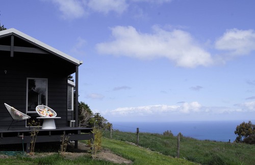 Unwind at Sri Menanti, a stylish two bedroom cabin located on Impiana, a 71 hectare Black Angus cattle farm. Relax and take in the majestic views toward Apollo Bay, across the Bass Strait and hill tops of the Otway Ranges.