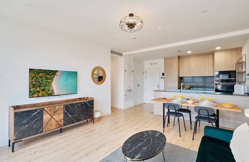 Get ready to relax in this 2-bedroom apartment in Málaga. This serene retreat offers a tremendous atmosphere for guests to unwind and recharge. With 1 queen bed and 1 full bed, this tranquil space is perfect for a small group or family. Enjoy the convenience of amenities like a fitness room, gym, roof top pool with amazing view , cinema , kids room, washer machine in the unit and common laundry too, co working place , assigned parking space WiFi, and h 24 front desk and concierge during your stay. We look forward to hosting you at our place.