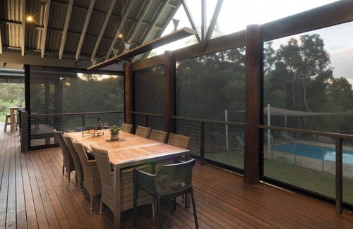 Prepare a gourmet meal in the modern kitchen with a gas cooktop, oven and dishwasher for easy cleanup. Share meals at the timber dining table for eight or step onto the wraparound deck for alfresco BBQs at the ten-seater table, with café blinds and a strip heater for cooler evenings. Sip a glass of Chardonnay at the rustic bar table with matching stools or take a peaceful nap in the hammock, gently swaying in the breeze.