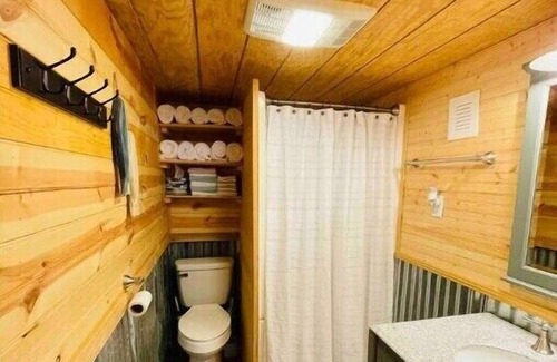 Our tiny cabin is a fun little getaway! You’ll love the cozy interior (750 total sq ft) with a master bedroom and two sleeping lofts with full size mattress that are ideally suited for child use.