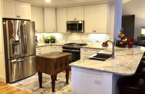 Welcome to your private oasis in Wilmington! Our fully remodeled home offers everything you need for a comfortable and memorable stay. Nestled on a secluded lot, this modern retreat features an expansive screened porch, a cozy wood-burning fireplace, and an open floor plan with vaulted ceilings and a gas fireplace. Enjoy stylish, newer furniture that adds to the home's relaxed vibe.
