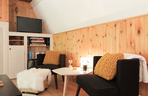 Welcome to Chalet Finland! Local travelers looking for a refuge to balance working from home, access to the outdoors, and are family and pet friendly our chalets provide a welcoming place. **COVID-19 Information: We believe it is important to do our part to protect the health of our guests and our team. Here are some of the steps that we have implemented: - Cleanliness is one of the highest standards we have for our chalet and you can see this reflected in our 5-star cleanliness rating as well as various comments left in the reviews. We have now increased our efforts and in addition to cleaning, we have added an additional disinfecting step. - All possible fabrics will be laundered in hot temperatures. Anything that cannot be put in the washing machine will be sprayed with disinfectant. - As long as we can continue to find additional supplies available for purchase we have Lysol wipes and spray available to our guests. If we can no longer find them we may not be able to provide them as quantities run low, but we will do our best to purchase them. - There will be a minimum resting period of 24- 48 hours between each reservation. During this time the chalets will be empty, with the exception of the cleaning team, to help eliminate any potential germs. Please do not hesitate to contact us if you have any questions Location: One of the best parts about the chalet is that it is located in the very charming Cheribourg neighborhood. Built in the 1970s, this ski chalet community is very tranquil and perfect for adopting a slower pace of life while soaking up nature. It is ideal for couples, families, or friends that are looking for a low-key and relaxing place. Because of this, it is not an area for parties or loud behavior. The no party and quiet rules are enforced at all times. We totally understand that life is full of good reasons to celebrate with a party (in fact, we love a fun party, but in the appropriate place). However, our chalets are not the right venue for hosting events. Please see the Chalet Rules below for more information relating to visitors and parties. Kitchen: Fully equipped with appliances that include a refrigerator, stove/oven, dishwasher, microwave, toaster, coffee pot (coffee included), and fondue pot. The kitchen is fully equipped for staying in and cooking. Note: The coffee maker is a standard drip pot. We do supply filters and coffee, but if you have a favorite coffee, please feel free to bring it along! Heating: In addition to electric baseboard heat there is also a wood-burning fireplace that is perfect for cozying up for a movie, while reading a book, or playing a game with family or friends. We try to keep firewood available and you're welcome to use any firewood that may be in either in the house or stacked outside. If there is not any firewood available, it can be easily purchased at one of the many grocery stores or depanneurs close to the chalet. Outdoor Patio: One of the best parts of the neighborhood is the many large trees. There is no better way to enjoy it than on the beautiful terrace which features an outdoor lounge area for sipping either a glass of wine or a mug of coffee. Includes a dining table with seating for 6, lounge chairs and a BBQ so you can enjoy dining outdoors. You almost don't want to go inside during the warmer months. Note: During the winter months (approximately Nov - April) the outdoor furniture & BBQ are not available as it is packed and covered to protect it from winter weather. Bedrooms & Sleeping Spaces: Featuring 3 bedrooms and sleeping a maximum of 6-8 guests. The master bedroom has a queen bed and 1/2 bath, the second bedroom has a double bed, and the third bedroom has a queen bed. All bedrooms are located upstairs and have new, comfortable mattresses. In addition, the downstairs sofa converts into a bed that can sleep 1 adult or 2 children. Bathrooms: The chalet has 1.5 bathrooms. The full bathroom is downstairs and includes a bathtub. The master bedroom includes a 1/2 bath with a sink and toilet. Bedding & Linens: Sheets and other bedding are provided for all the sleeping spaces. Bath towels are also provided for our guests. Technology: The chalet has a flatscreen TV with Netflix. In addition, the chalet is equipped with high-speed wifi. Pet-Friendly: Since we love 4-legged family members, all of our chalets are pet-friendly. Please make sure you tell us about your pet in your reservation request. Please see the Chalet Rules below for more rules about bringing your pet along. Things to note: - If you have pet allergies please be aware this chalet may not be a good fit for you. - The stairs are steep, so if you have young children or people in your group with mobility issues, please consider this when choosing the chalet. - The chalet does not have air conditioning. It is equipped with a dehumidifier and portable fans. - The chalet does not have cable or satellite TV but does include access to Netflix. - Parking: The driveway will accommodate 2 -3 cars. Due to very limited overflow parking, we recommend limiting cars to the number the driveway will accommodate. - Infants & Children: We are very happy to host families with infants and children in our properties, but please be aware that they are not child proofed (cabinet door latches, electric socket covers, baby gates, etc.) and we do not provide amenities for children (high chair, crib, pack 'n play, etc.). GST & QST taxes included Chalet Rules: By submitting a reservation request you agree to these terms. So please read them before submitting your reservation request to make sure the chalet is a good fit for you. - The primary renter must be 25 years or older and must be present during the stay. - Only registered guests that are included on the reservation are permitted to stay at the chalet. Please ensure that the correct number of guests is reflected in your reservation request. Visitors must be approved in advance. For example, hosting a dinner or BBQ in which guests ot