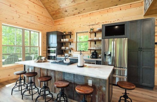 This brand-new luxury 4BR/4.5BA cabin just 4 miles from downtown Gatlinburg offers breathtaking panoramic views of the Great Smoky Mountains National Park! Featuring a heated swim spa, private hot tub, outdoor kitchen, EV charger, and multiple gas fireplaces, this cabin blends top-tier comfort with high-end design. With a game-packed lower level, plush bedrooms, and stunning covered decks, this is your ultimate Smoky Mountain retreat.