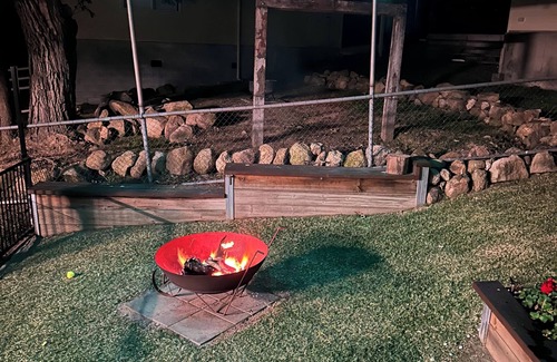 Beautiful indoor fireplace in living room for this cosy night and outdoor fire pit in back yard.