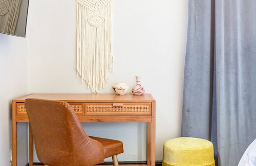 Say hello to Hayes Valley. This cornerstone building features a spacious communal lounge, ideal for working remotely. And your private space features floral wallpaper, soft accents, and a subway-tiled bathroom. Original charm intact, there's no elevator or air conditioning. Ready to sightsee the City by the Bay? Popular destinations, such as The Painted Ladies or Museum of Ice Cream, are a few blocks away. Stroll through darling streets dotted with candy-colored rowhouses, hip boutiques, and multicultural eateries. When dining out, we love the Californian fare at the Rich Table, like the aged beef dumplings with house-made chili crunch oil. Or why not grab a 6-pack of locally brewed ciders for a picnic in Alamo Square or another nearby park? Hayes Valley has the best of San Francisco.