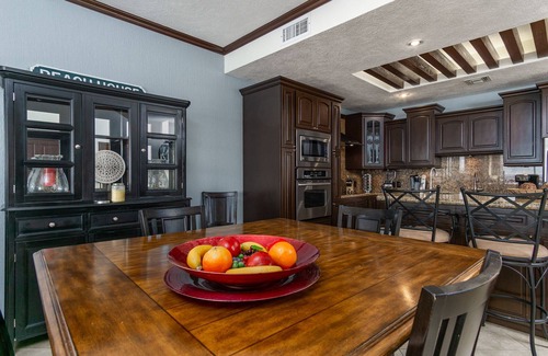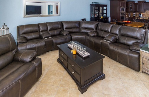 3 bedroom Sky 1002 is large and welcoming, with lots of rich leather furnishings and pale blue accents. A great U shaped sectional sofa offers multiple recliners to enjoy. There is also a large TV, and High-Speed Fiber Optic internet, the quickest in town.