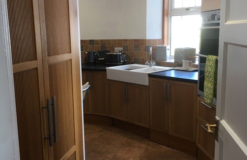 On the ground floor, the entrance hallway leads to the twin and kingsize bedroom both of which share the large shower room also located on this floor. The open plan lounge/ dining area has ample seating and dining space for 8 and the uniquely shaped kitchen, which was originally the Dairy Parlour, has everything you need for a self-catering holiday: fridge freezer, electric hob, oven, microwave washing machine, tumble drier and dishwasher.
