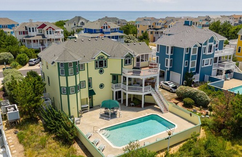 The top level includes a main bedroom suite, a private deck with ocean views, and a relaxing jacuzzi tub. Lets talk kitchen - wow! If you are cooking family meals, grabbing a snack, or having drinks, this home’s kitchen is fully stocked with everything you will ever need. Don't forget to pause and soak in the ocean view while looking from the kitchen into the family room. A new smart TV make the family room a great spot to chill and enjoy some great family time. If you want to catch some afternoon rays or enjoy some quiet time while listening to the ocean waves crashing, just choose from one of the multiple decks. You can also lay poolside in the comfort of your own oasis. If you must work while on vacation, you can still enjoy the fantastic ocean view from the top deck. This home is the ideal setting for you and your family to enjoy a tranquil, beach vacation, and you'll keep you coming back year after year.
