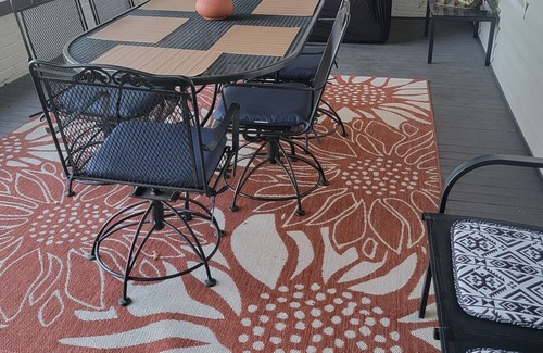 This cozy home is ready for you to enjoy your coffee or your next glass of wine. It's just like being in your own home away from home. Nice big porch to kick back and relax close to not only stores but restaurants as well.