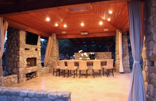 Outdoor Living at Its Finest The expansive outdoor kitchen with wine fridge, bar seating, fireplace and multiple outdoor living rooms with fire pits create the perfect space for al fresco dining, 75-inch outdoor TV for movies under the stars, game day BBQ's, or sipping your favorite wine while watching the sunset over the valley. -