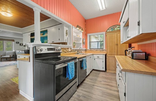 The outdoor space includes a fire pit charcoal grill combo (need to provide your own charcoal) with ample seating and outdoor shower. There is a security camera pointed at the driveway to ensure accuracy of booking and for general safety. The kitchen will have some dry spices, plates, glasses, utensils, etc. as well as a variety of cookware to prepare meals. The house has a filtered watersystem but we recommend you bring your own water to cook and drink, and just use the house water to bathe and do laundry. Sheets and towels are provided but you will need to bring any hygiene products as well as trash bags, toilet paper, paper towels, soap and shampoo etc.
