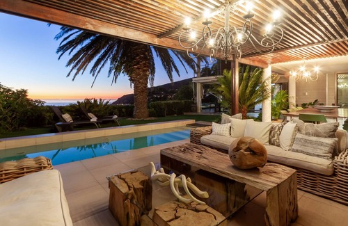 Nestled in secluded Llandudno,Cape Towns famous beach with 300 degree ocean and mountain views this enchanting entertainers house boasts 4 king bedrooms, each offering a cozy retreat for guests. With separate guest toilet equipped with luxurious amenities like a bidet and hair dryer, comfort is guaranteed. The property also features air conditioning, WiFi, heating, and a washing machine for convenience. 2 separate outdoor BBQ kitchens, one poolside. It's easy to see why you'll be able to unwind at our place.