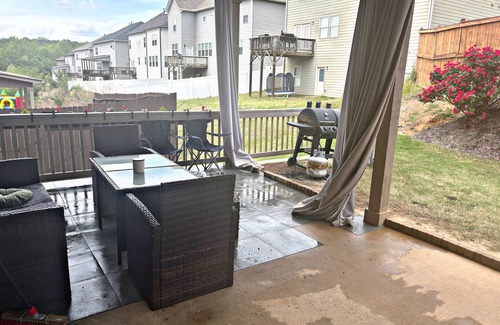 This delightful house in Fairburn is a gem waiting to be discovered by guests. Welcome to your perfect Atlanta getaway! This spacious 4-bedroom, 1 king 3 Queen 1 twin beds. Each room is equipped with smart TV’s.2.5 bathroom 2 full and 1 half This home is located in a quiet, family-friendly neighborhood, just 8 miles from the airport and 15 miles from downtown Atlanta. Enjoy modern amenities throughout, including a fully equipped kitchen and a cozy living open space. The backyard is ideal for a BBQ. With comfortable accommodations for up to 9 guests, this stylish retreat is perfect for families or groups looking to explore Atlanta. Book your stay today!