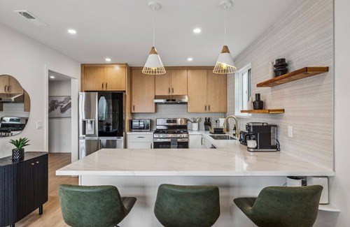 The home features multiple bedrooms, stylish living spaces, a fully equipped kitchen, and cozy dining areas, making it ideal for relaxing after a day of sightseeing. Enjoy fast WiFi, streaming-ready TVs, and a clean, well-stocked environment. We also offer a 2-car driveway for hassle-free parking.