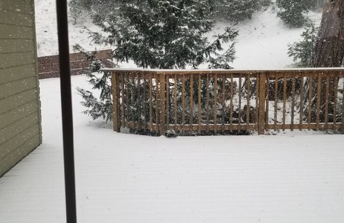 Enjoy this home in the winter and watch the kids sled off the back deck (or adults) and barbecue on the weber grill... on the large lot with a snow park in the back yard. One of the best areas for sledding in town! In the summer hike around the area on some of the trails or hop in the car and see some of the more remote areas. Or simply stay at home and watch the herd of deer walk up and graze near the back fire pit.
