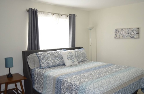 4 bedroom house. All bedrooms are carpeted, 2 are furnished with king-sized beds and large closets. One bedroom has an ensuite bathroom that includes a walk-in shower, while the second bedroom has an ensuite bathroom with both a shower/jacuzzi tub combo. The third bedroom/office has a full size futon. There is also a full size futon in the game room and air mattress available. There is also a queen sized air mattress available as well as a pack & play available for babies or toddlers