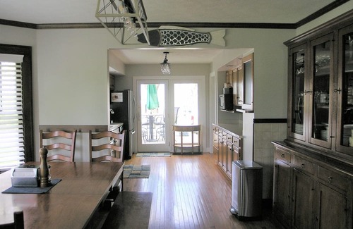 Bring your entire family and friends to entertain in this renovated lakefront house secluded on 60 wooded acres. The large yard, multiple grills, and deck offer even the largest of groups plenty of generous space. Enjoy summer rain showers on the fully enclosed porch or pavilion. Relax on our fully reclining furniture with a sweeping view of the lake. The table expands for large groups. Enjoy the spacious kitchen with new appliances.