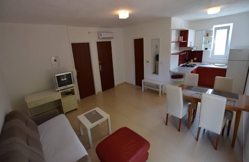 Spacious apartment with terrace is located in Pag. Spacious apartment with terrace provides accommodation, featuring Kitchen, Parking, Ocean View, among other amenities. This Apartment features Kitchen, Parking, Ocean View, to make your stay a comfortable one.