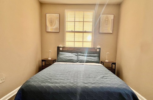 This property is located on a quiet diverse neighborhood. There are 4 large bedrooms with bedside tables and nightstands. Kitchen has all stainless steel appliances. Property has 2 smart tv and has an exercise equipment located in the basement. This home features contemporary art and has a modern yet simple style decor.
