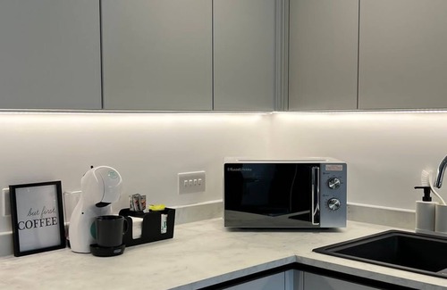 Newly refurbished apartment with stylish high quality fixtures completed with a fully equipped kitchen/microwave/dishwasher/integrated fridge freezer and washing machine to crockery/cutlery, we have everything you would need for both a short or long term stay, including a well-stocked coffee station ( a must-have!). The second bedroom is fitted with a home-desk area and comfortable sofa bed for more guests, making our apartment catered to any type of stay. Our prime location means you're moments away from anything & everything you'd need.