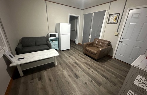 Clean and Comfortable oversized private 1 bedroom motel room with a separate cozy living room that has a sofa sleeper and kitchenette area. Located at the Sahara Club & RV Park, this roadside motel conversion has an on-site bar & grill with great menu that is open 7 days a week, laundromat, ice vending, rv park, fire pit area, and so much more! Just minutes from white water rafting and the Ocoee River, downtown Copperhill, and Ducktown. Also a short drive to Blue Ridge GA & Murphy NC!